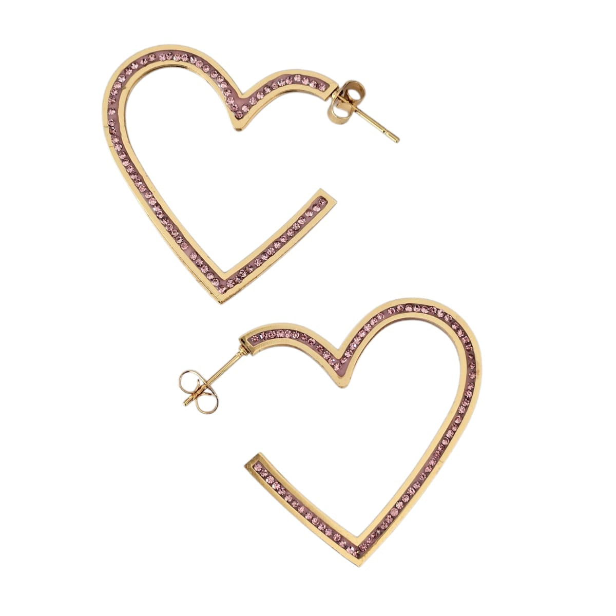 ARRACADAS CORAZÓN ZIRCONIAS ROSAS
